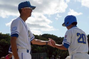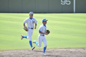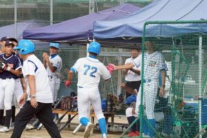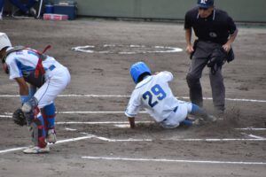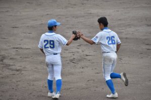 暑い1日、熱い試合になりました。 兄弟対決、もりあがりました! ОB選手のスピードある力強い球を捕球させてもらう事、 低い捕球体制、盛り上がる声かけ 現役選手にとってとても勉強になる良い経験ができました!