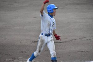翌日の3回戦 準決勝、 八頭ボーイズ戦では、終盤までドキドキした試合でしたが、 チャンスの場面で、ここでもホームラン!!