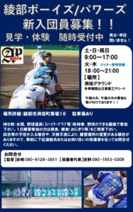 秋祭り体育祭の時期と重なり ご参加が叶わなかった方、チームもおられたかもしれません 見学したい、体験希望の方は お気軽にお知り合い、関係者を通じてお知らせ下さい。 今年度中のナイターは11月上旬中!