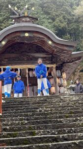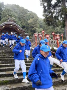 まずは、綾部市上野町の若宮神社で必勝祈願。その後はお決まりの選手一人ずつの